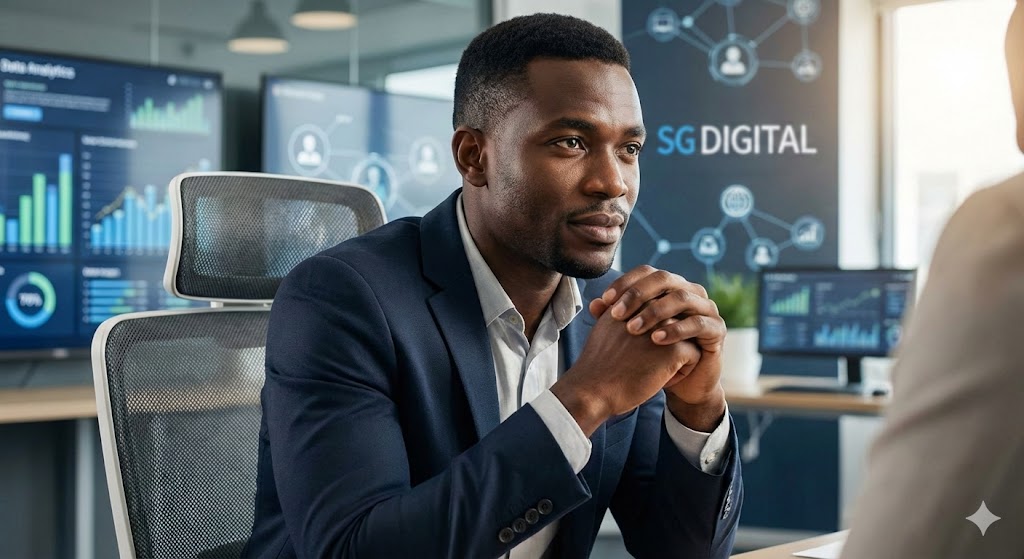 A SG Digital é especialista em Marketing Digital e Soluções Tecnológicas para impulsionar sua empresa em Angola. Transforme sua presença online e alcance resultados reais.